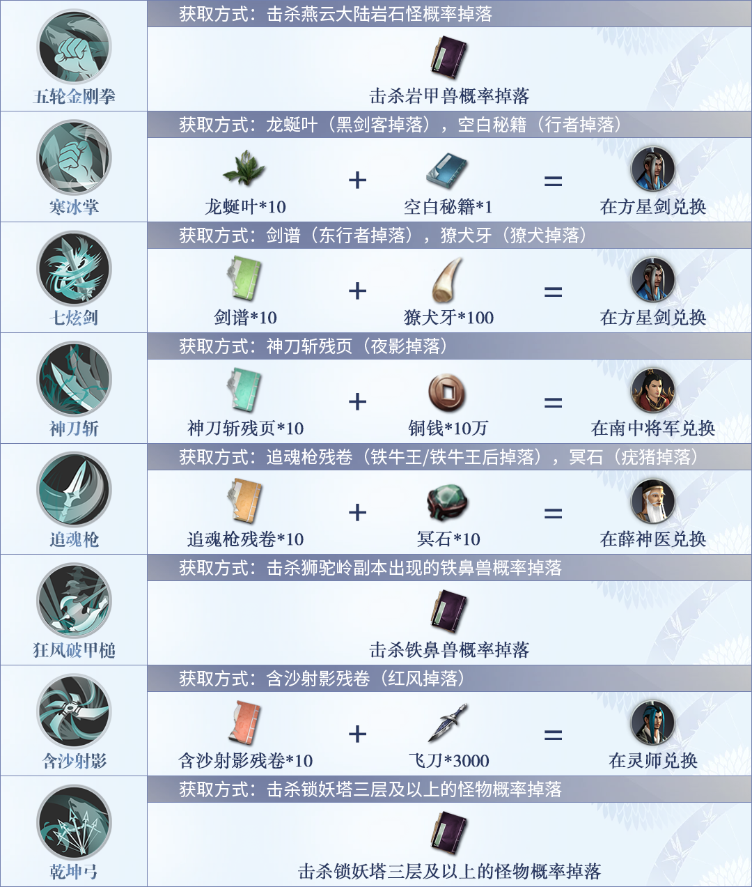 1、获取方式:可以在顺天城武学大师处购买,心法在各大副本掉落。
