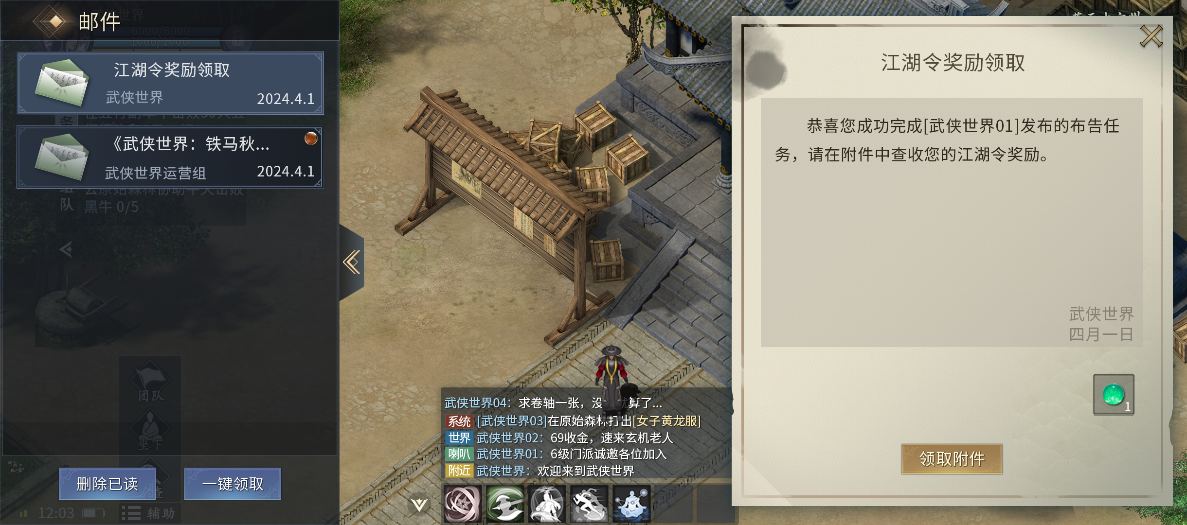 8、完成江湖令任务后,系统通过邮件发放江湖令奖励。玩家领取奖励,任务结束。