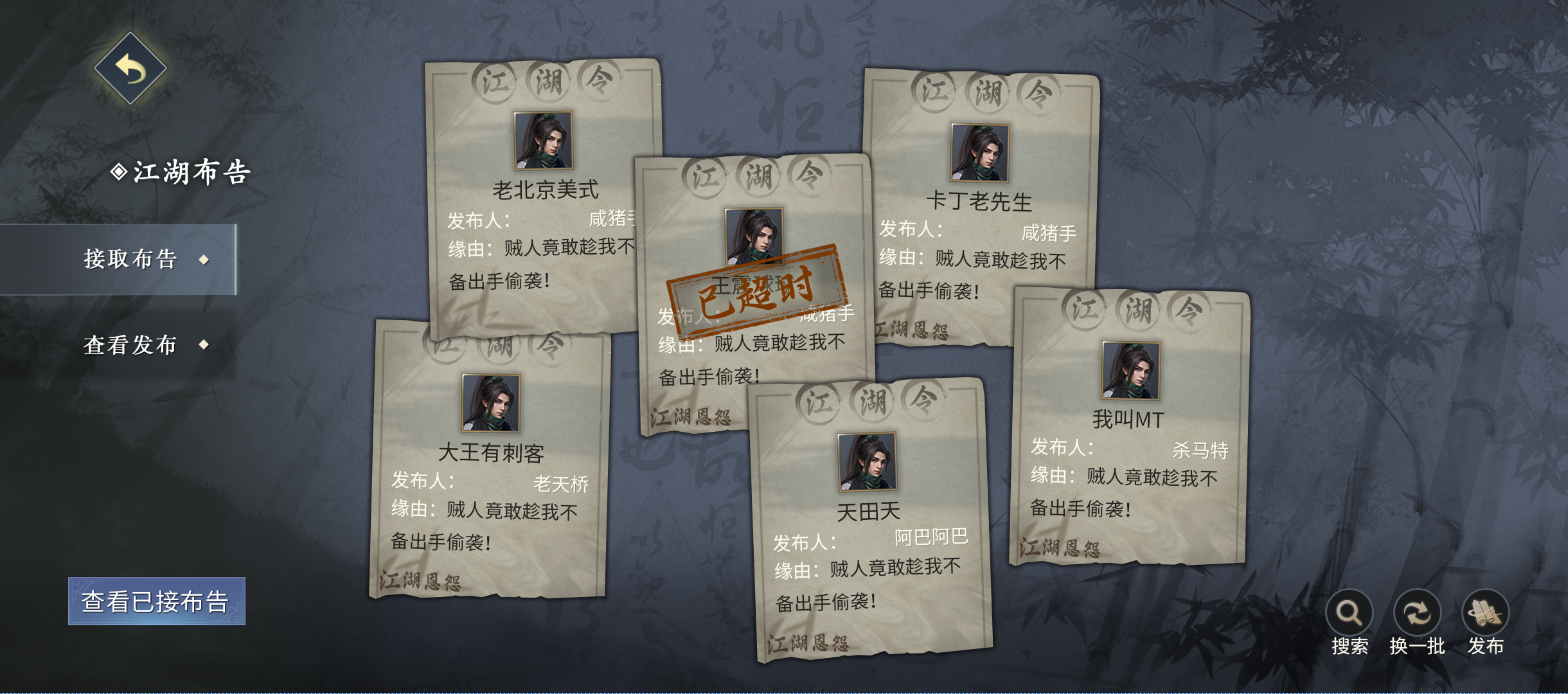 5、发布者取消布告,江湖令扣除,奖励物品返还;