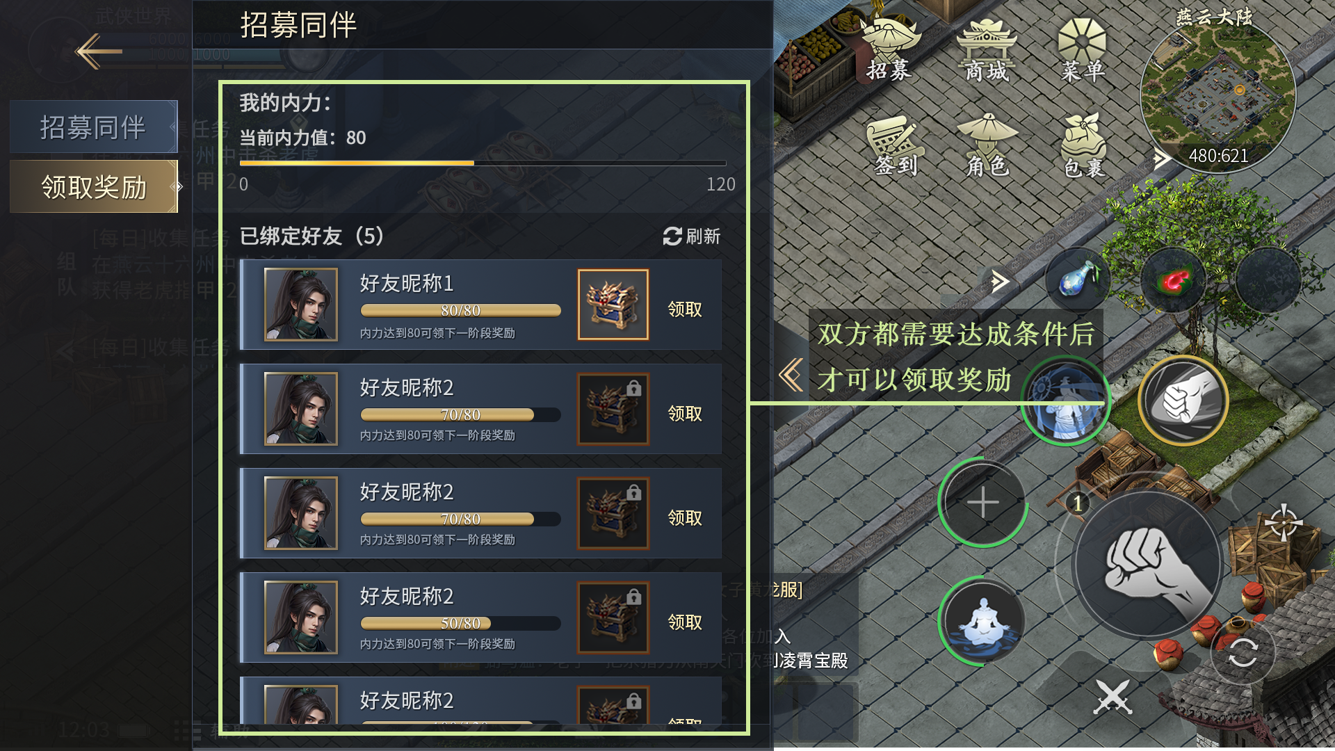6、搬山境:内力值480 奖励:金五行礼包*1