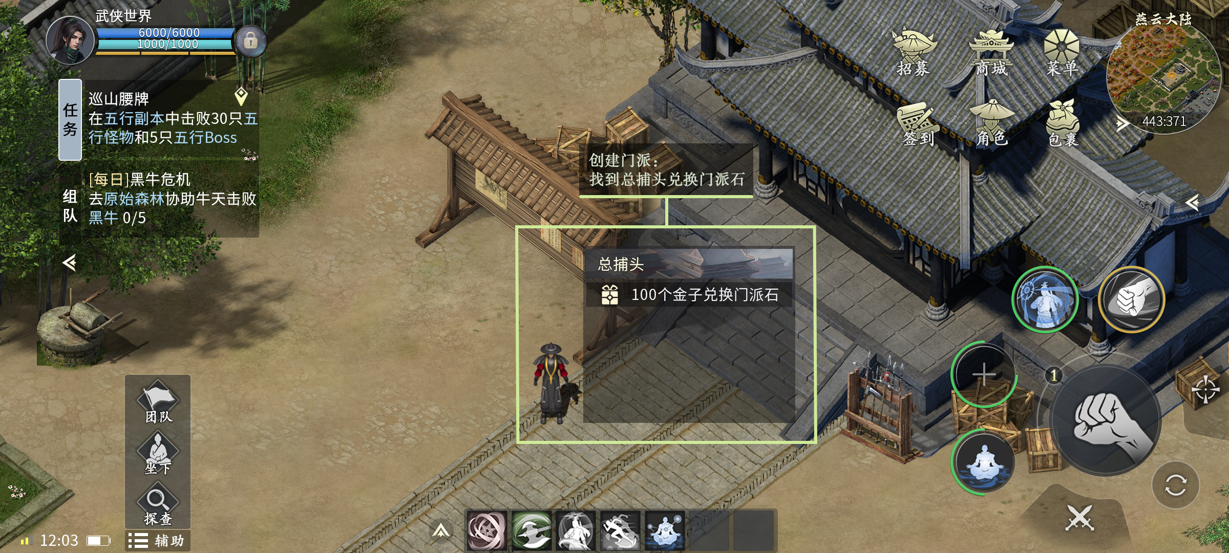 1、前往武林会馆,找到总捕头可购买门派石。
