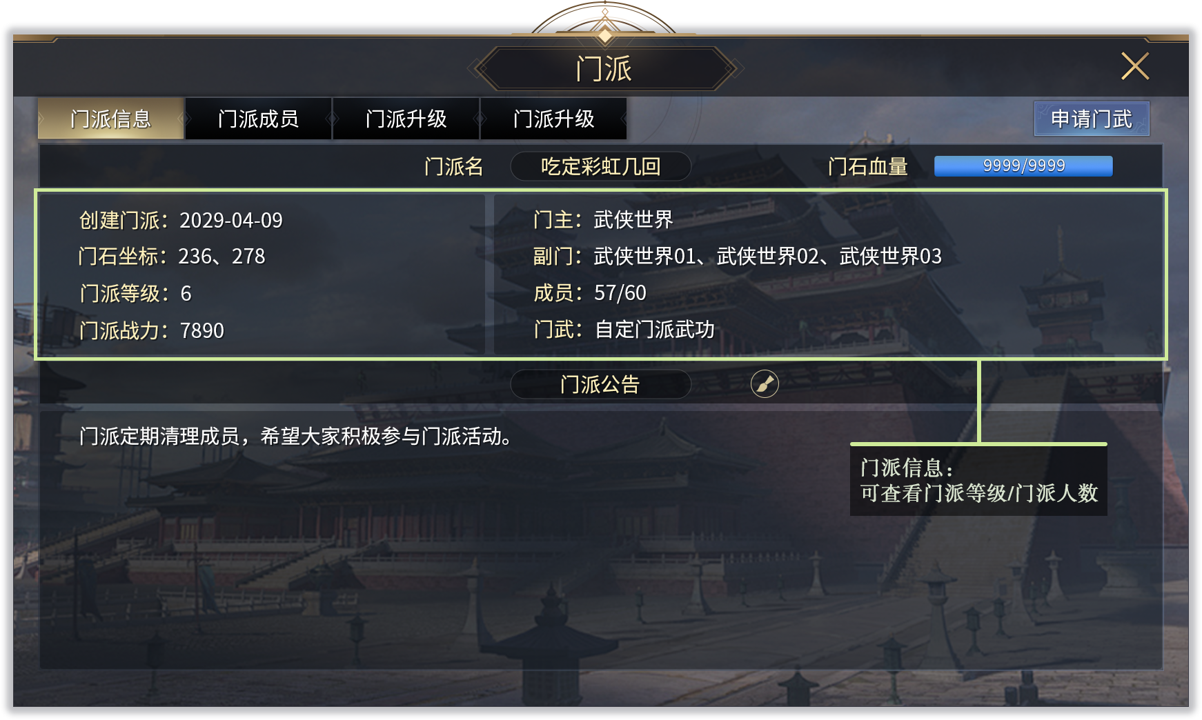5、与已创建的门派名称不能重复。