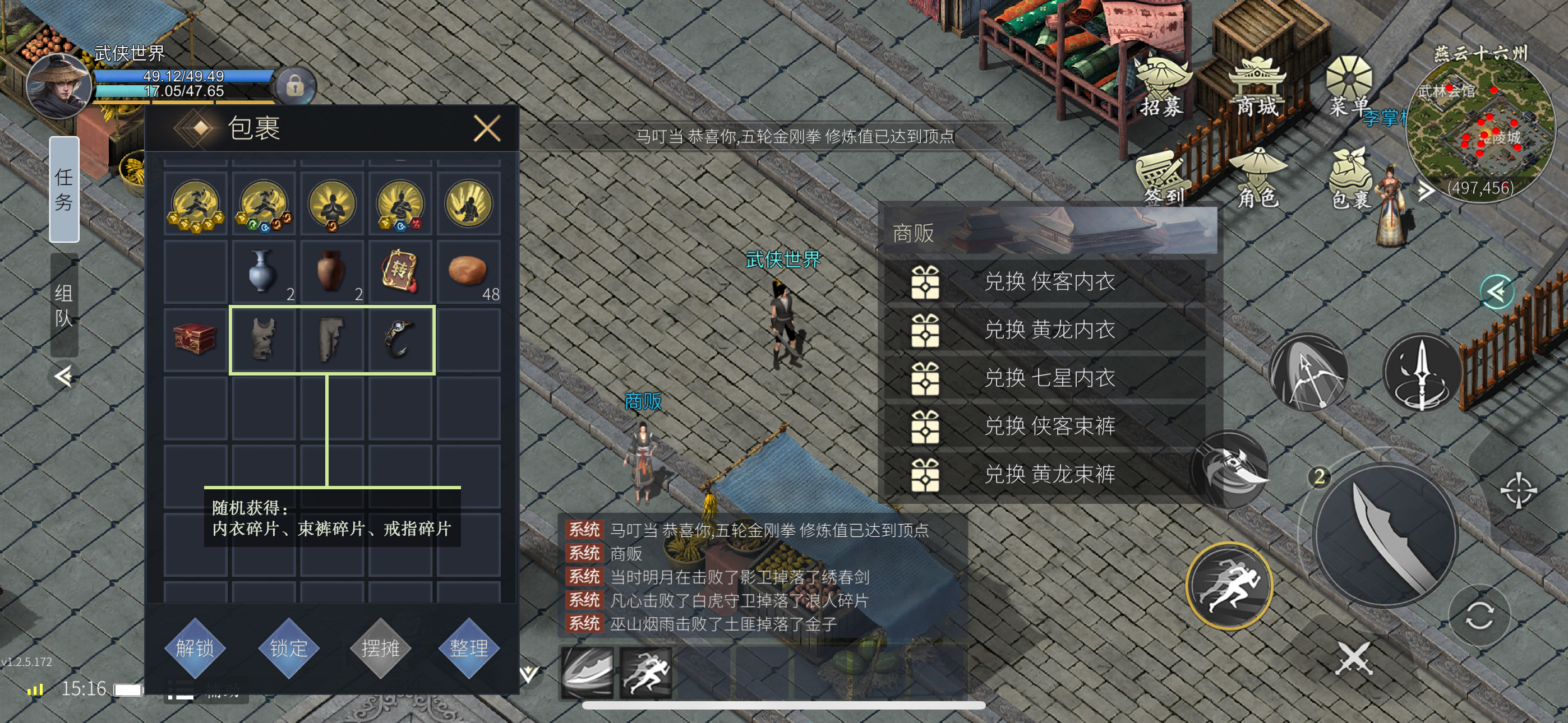黄龙内衣:侠客内衣+内衣碎片*110+黄龙碎片*10+金子*30;