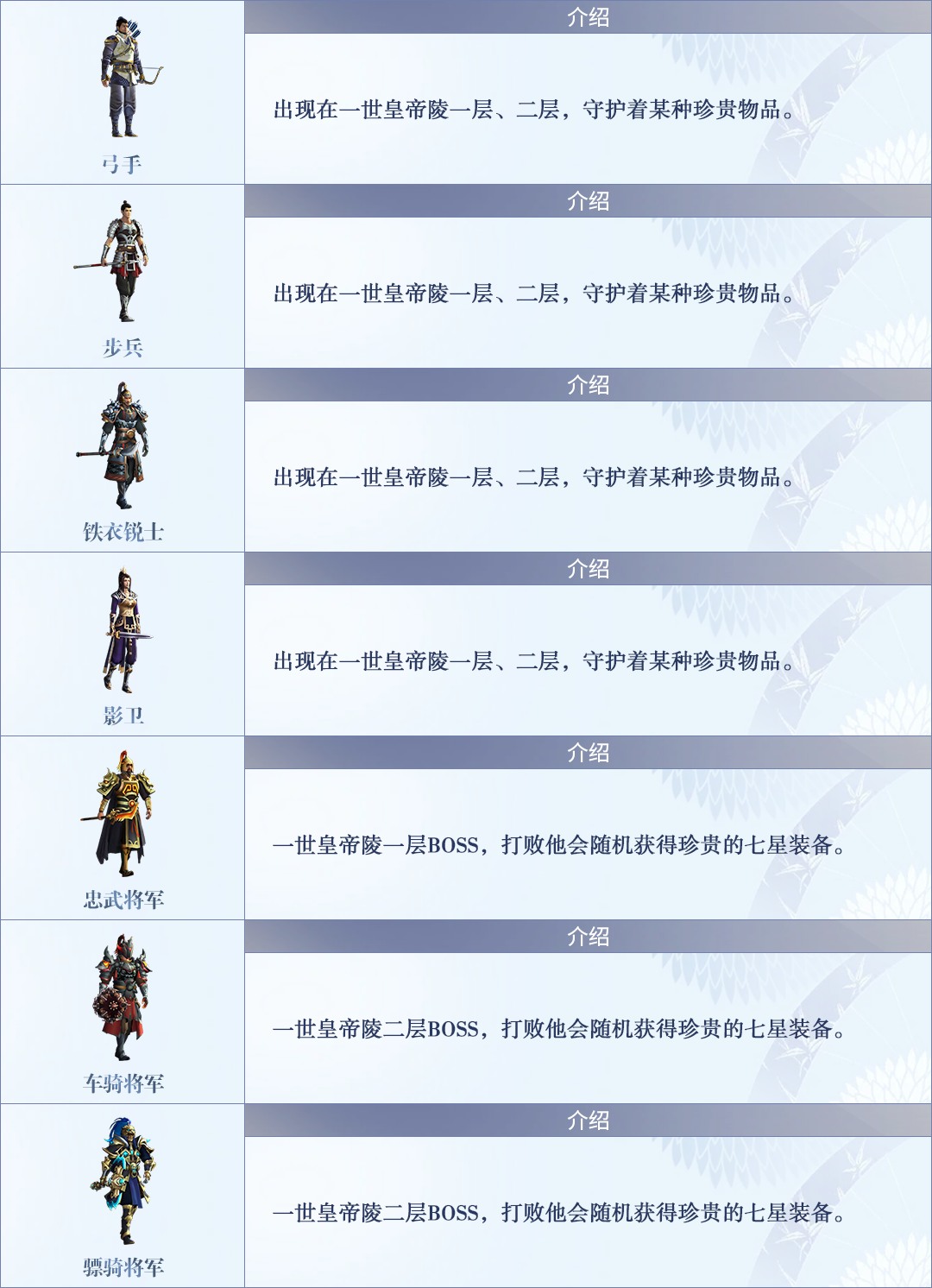 如今,一世皇帝陵定期开启,已有诸多侠客在陵中获得奇遇,静待江湖诸位侠客前去探索一番。