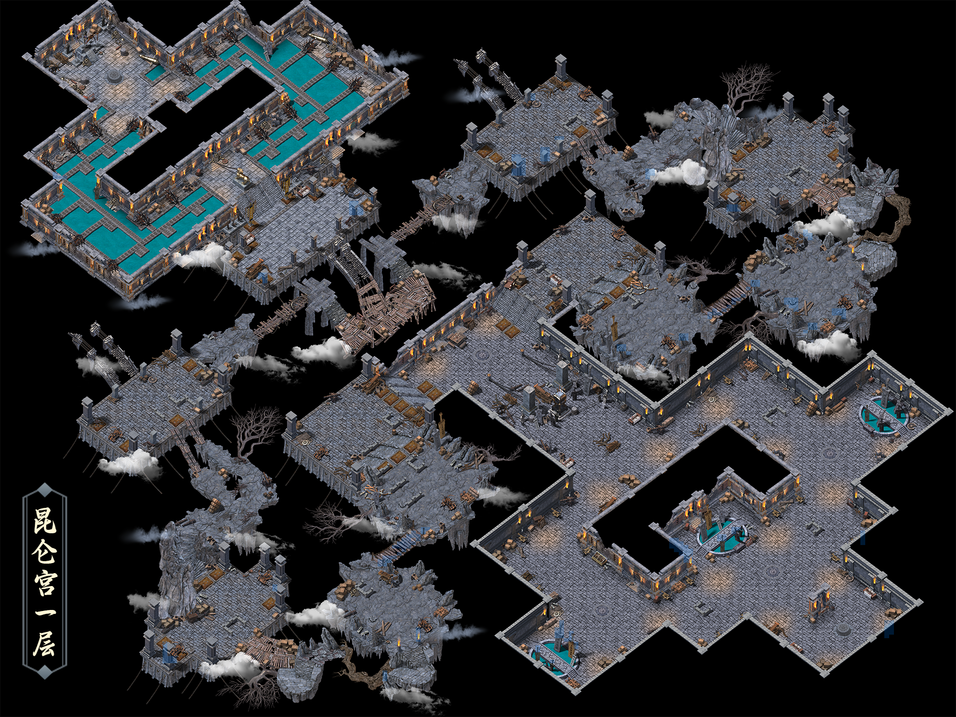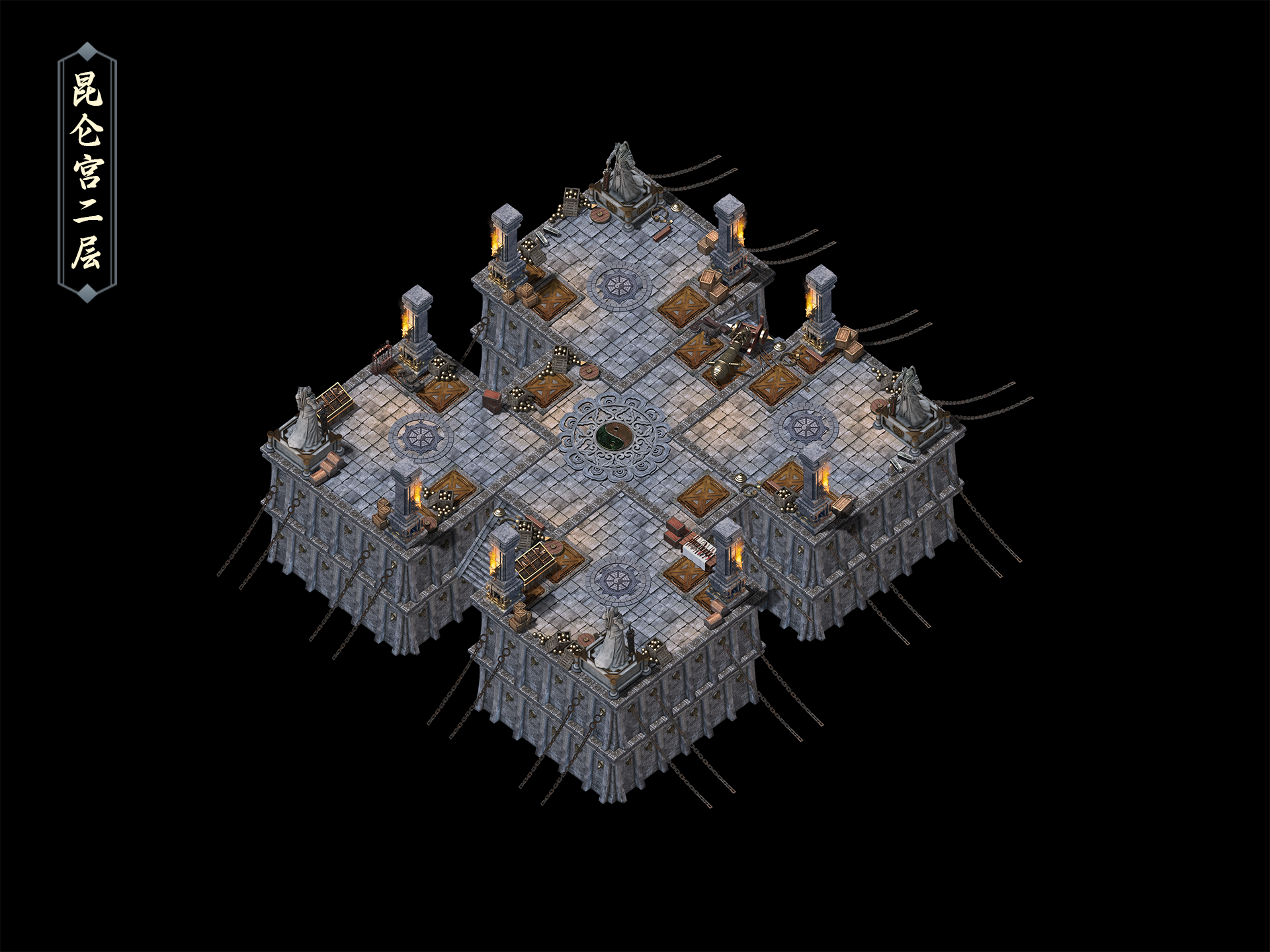 1、进入副本后,玩家通过击杀昆仑宫一层前厅的怪物和机关弩车,通过跳点传送到后厅。