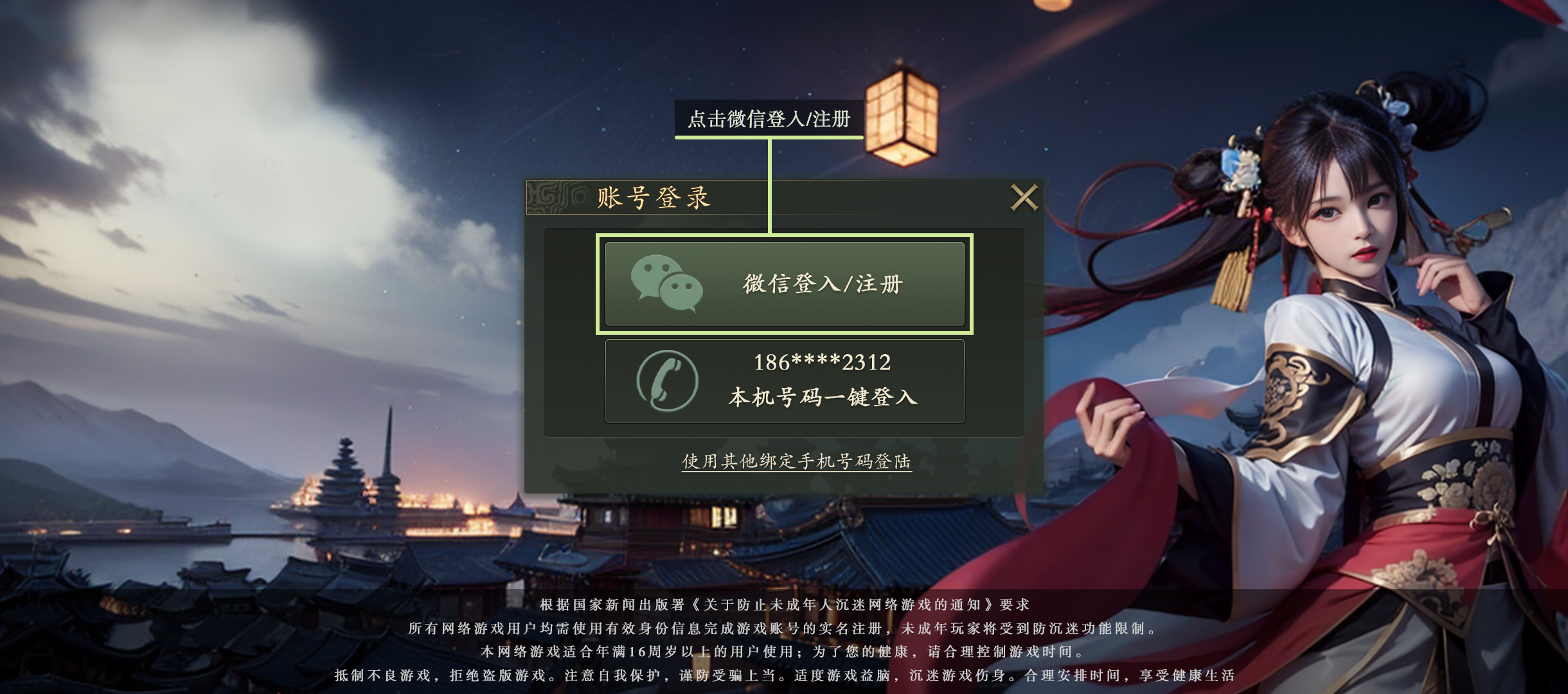 进入游戏到达账号登录界面,点击“微信登入/注册”